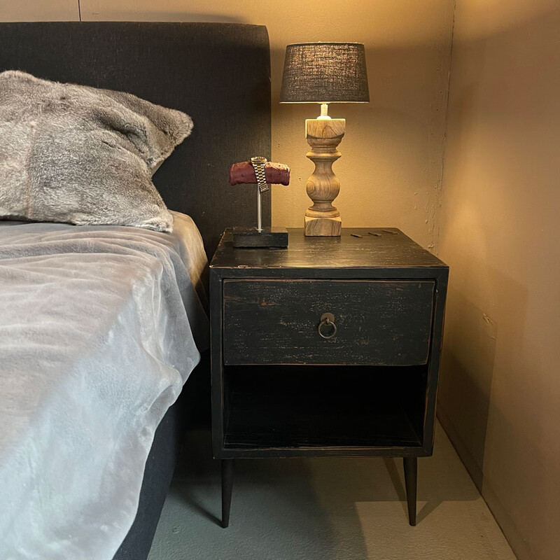 SNK 122, Black bedside table with drawer and shelf